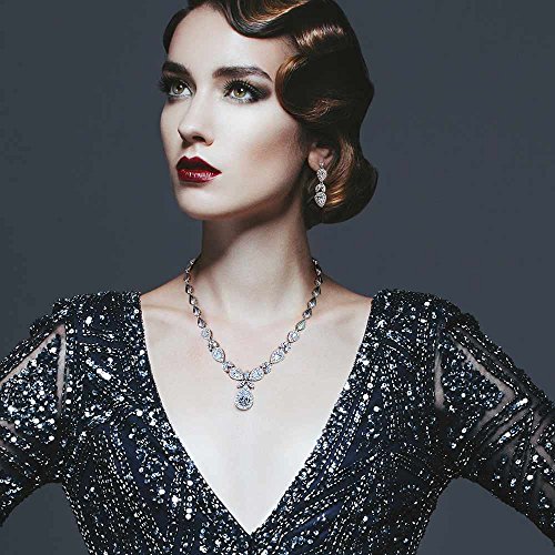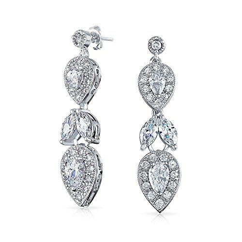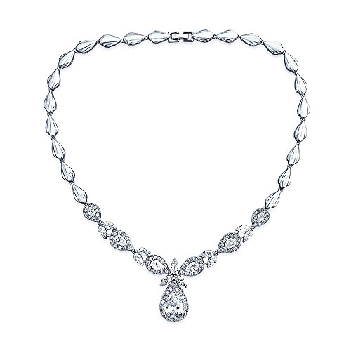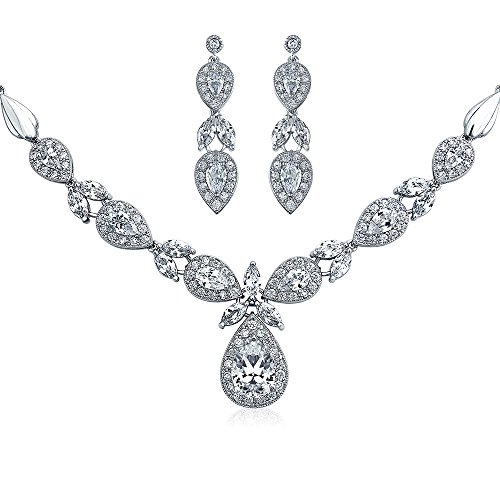 -. Title : Bling Jewelry Teardrop CZ Bridal Necklace Drop Earrings Set Rhodium Plated