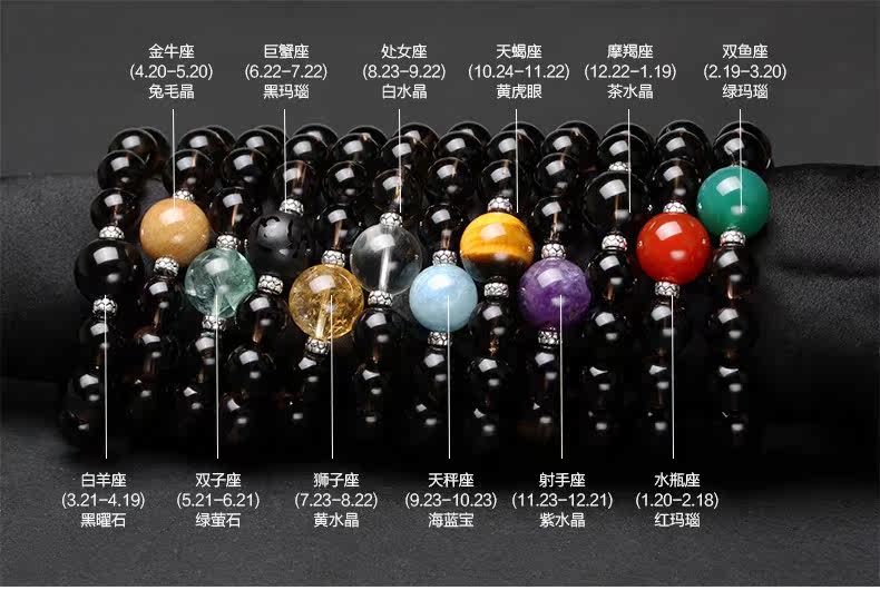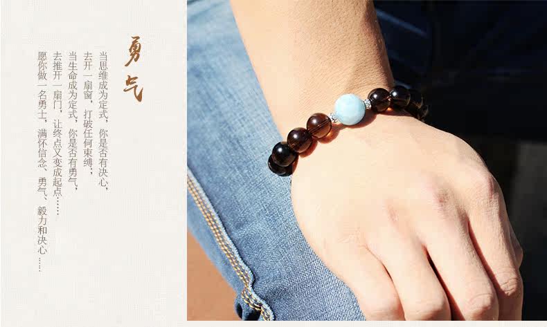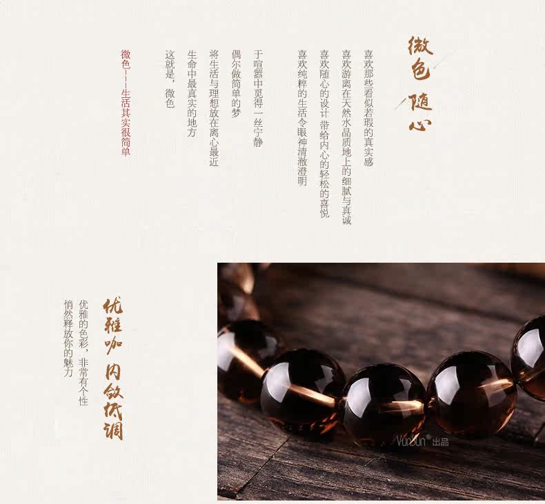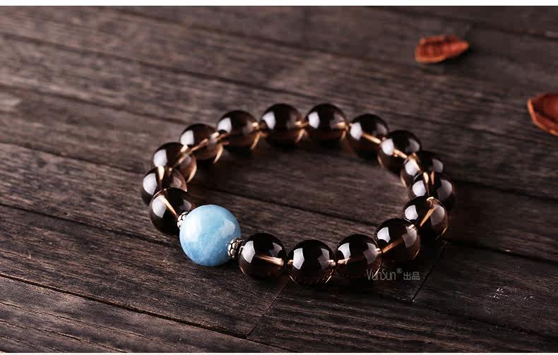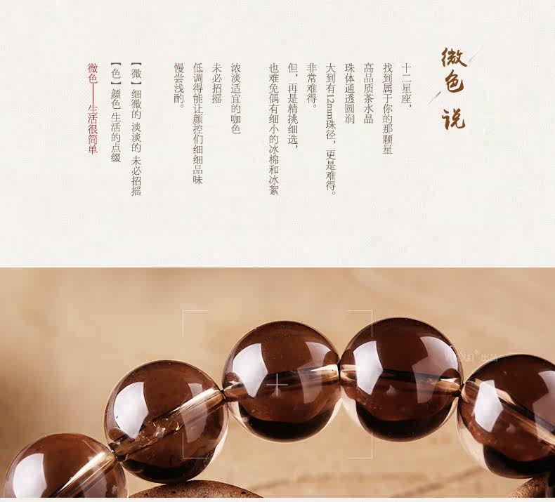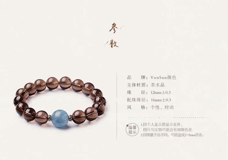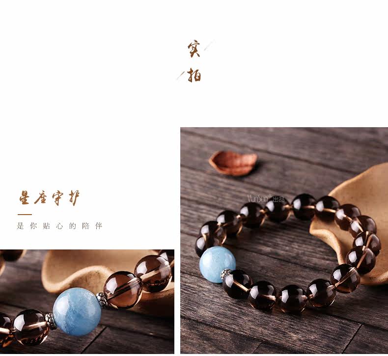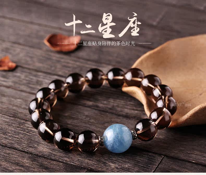 VunSun天然茶水晶手链男款单圈茶色十二星座手串茶晶简约大气饰品