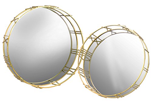 Urban Trends Metal Round Wall Mirror with Cutout Roman Numerals Sides (Set of 2), Coated Finish, Gold