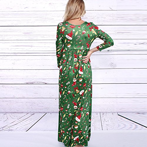 Kinikiss Women's Christmas Santa Snowman Print Floral Long Sleeve Xmas Maxi Party Dress,Light Green,Medium