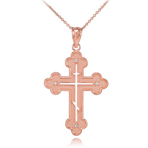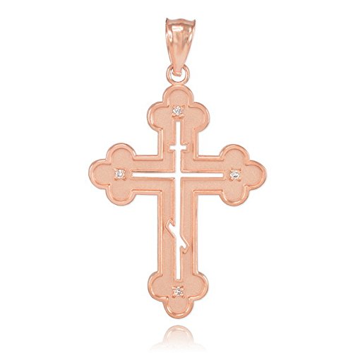 -. Binding : Jewelry -. Brand : Religious Jewelry by FDJ -. Department : womens -. Feature : budded, botonee-style Eastern Orthodox cross pendant necklace charm in combination polished and matte finish / faithfully crafted in authentic 10 karat rose gold and accented with a quartet of diamond stones / comes with free special gift packaging / made in the USA yet offered at factory direct jewelry P.R.Ice / ships from the manufacturer directly to the customers -. Label : Claddagh Gold -. Manufacturer : Claddagh Gold -. Model : CM800NRG -. MPN : CM800NRG -. PartNumber : CM800NRG -. ProductGroup : Jewelry -. ProductTypeName : FASHIONNECKLACEBRACELETANKLET -. Publisher : Claddagh Gold -. Studio : Claddagh Gold -. Title : 10k Rose Gold Eastern Orthodox Cross Charm Pendant Necklace with Diamonds