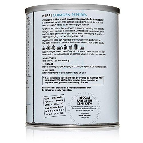 A nutritional powerhouse Sometimes referred to as the skin's glue, collagen helps give it strength, plumpness and smoothness. It may also help thicken hair, boost the immune system, regulate sleep, and reduce inflammation associated with osteoarthritis and rheumatoid arthritis. As you age, natural collagen production wanes. Keppi Collagen Powder contains high levels of protein, offsetting collagen loss for a variety of benefits such as weight management and good gut health. Sourced from the bovine collagen of pasture raised cattle, Keppi is gluten-free, non-GMO and Halal certified. Versatile and easy to prepare Keppi Collagen Powder comes in an air-tight can to maintain product freshness and efficacy. We also include a measuring scoop for consistent dispensing. Keppi is odorless and flavorless, and it dissolves quickly in smoothies, juice, coffee, soups and other recipes. Its' wide-ranging benefits and ease of use make it the perfect dietary supplement. Use it at work or at home, or take it with you on vacation for uninterrupted whole-body health. Customer Satisfaction is our top priority We insist on the highest quality ingredients and manufacturing processes to bring you this premium Collagen Supplement Powder. We confidently offer a 30 Day Money Back Guarantee for your peace of mind. In the unlikely event that our product does not perform to your expectations, return the unused portion for a full refund of your purchase price. No questions asked. Make every day the best day of your life. Add Keppi Collagen Powder to your cart today. 0 |