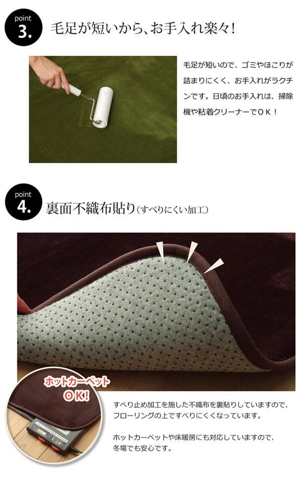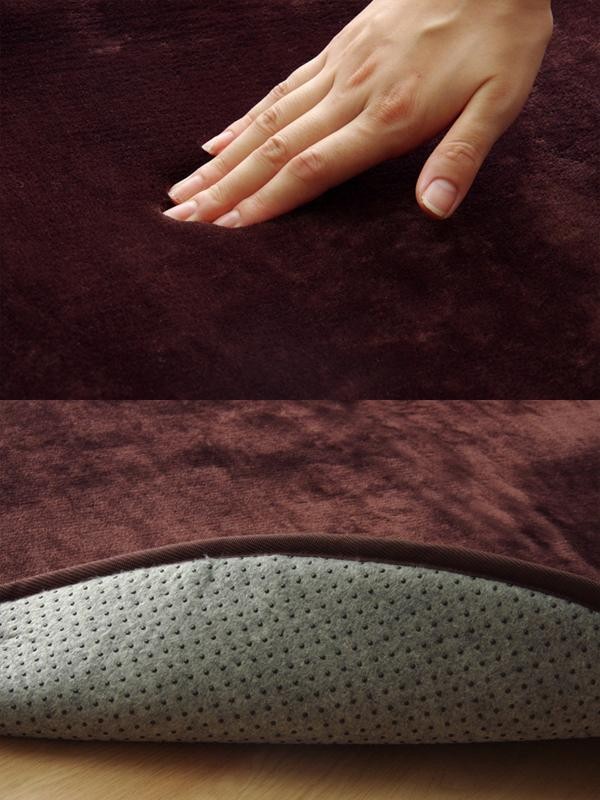 生地に抗菌・防臭加工を施したラグカーペットです。しっとりとして非常に柔らかいフランネル生地を使用しています。中材には低反発ウレタン18mmを使用しています。プニプニとした柔らかい感触とボリューム感をお楽しみ下さい。 |