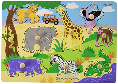 Your toddler will return again and again to the Chunky Aquarium Puzzle from the Small World Toys Ryan's Room collection. Designed especially for early learners, this wooden puzzle features colorful images that help children learn to group like items and expand their vocabulary. Brightly colored sea creatures lift out to reveal matching images and words beneath. The large pieces that are easy for little hands to grasp, remove and replace. The Small World Ryan's Room collection inspires discovery and imagination, fostering valuable developmental skills kids will use for a lifetime. We call it play with a purpose - kids just call it fun. Small World Toys has been a leading toy manufacturer for 50 years. We believe that play is an integral and necessary part of a child's development and education. At Small World Toys, we are committed to developing fun, innovative, high quality products for children of all ages.Feature
