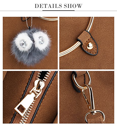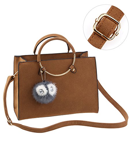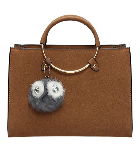 Tom Clovers Womens Owl Fur Ball Pom Pom Round Ring Matte Cross Body Bag Shoulder Bag Satchel Sling Bag Handbag Tote Bag