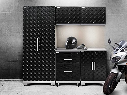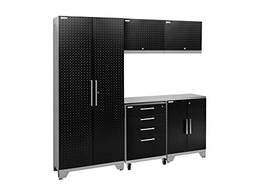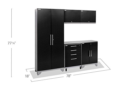 NewAge Products 55672 Performance 2.0 Garage Storage Cabinet Set with Stainless Steel Worktop and Led Lights, (6-Piece)