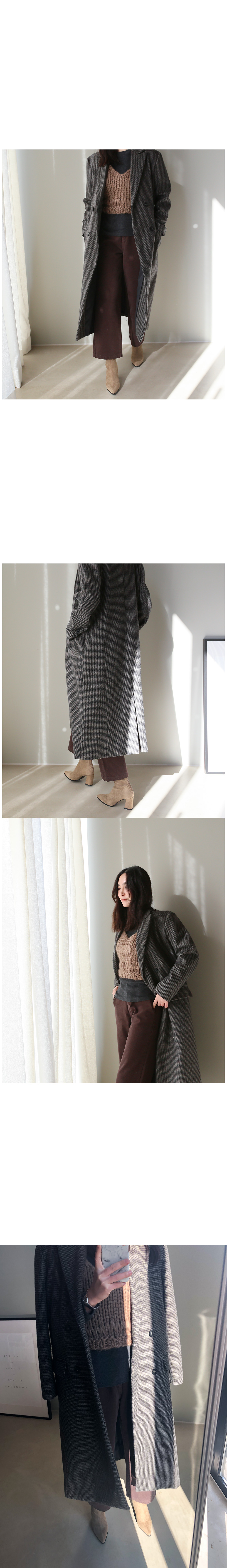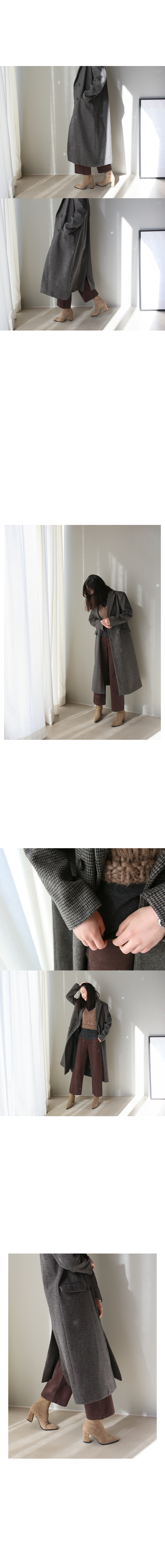 요즘 많이 찾으시는 울혼방 소재로 고급스러운 마감처리와 종아리를 덮는 기장감으로 마감선이 아주 깔끔한 제품입니다.