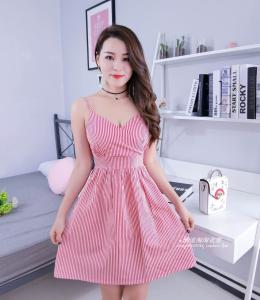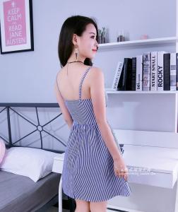 ストライプワンピース ハイウエスト ミディアム丈 膝上 キャミワンピース プチプラ 大人カジュアル トレンド