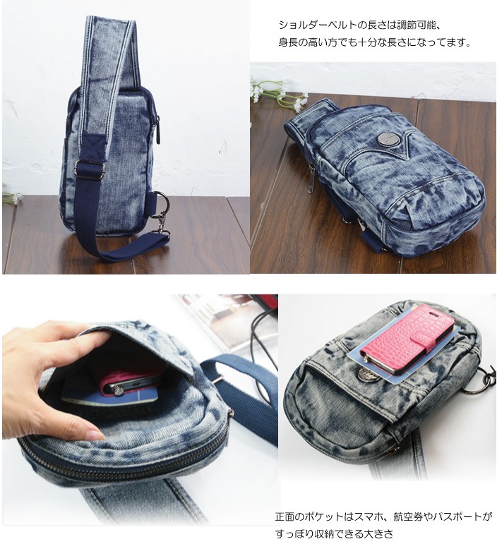ユニセックス レディースかばん、紳士バッグ デニム地 収納力抜群 ユニセックス / スタッズ付き ヴィンテージ風 カジュアル度&オシャレ度満点 デニム バッグ サイクリング/ ワンショルダーバッグ/ボディバッグ/