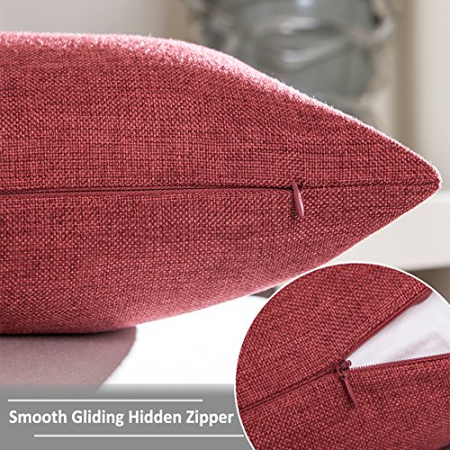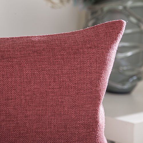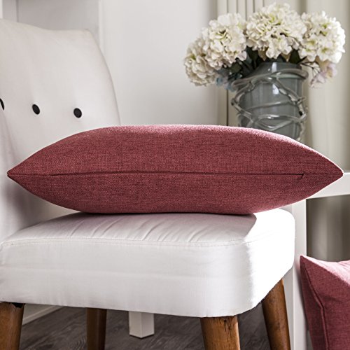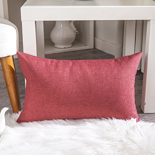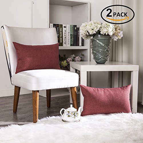 Home Brilliant Indoor/Outdoor Linen Oblong Rectangular Throw Pillow Cover Cushion Cover for Patio, 12" x 20", 2 Pack, Burgundy