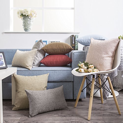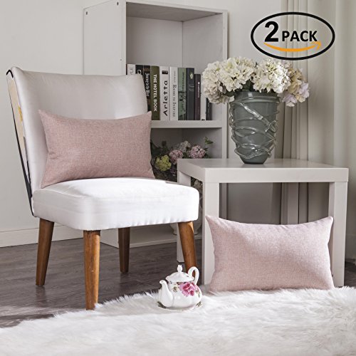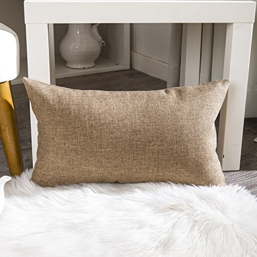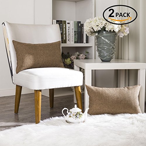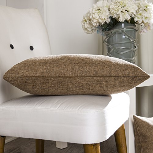 Home Brilliant Soft Textured Linen Oblong Throw Pillow Cover Cushion Cover for Living Room, 12 x 20 inch, 2 Pack, Brown