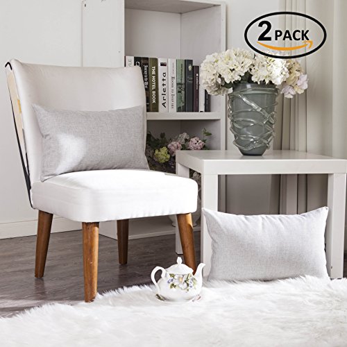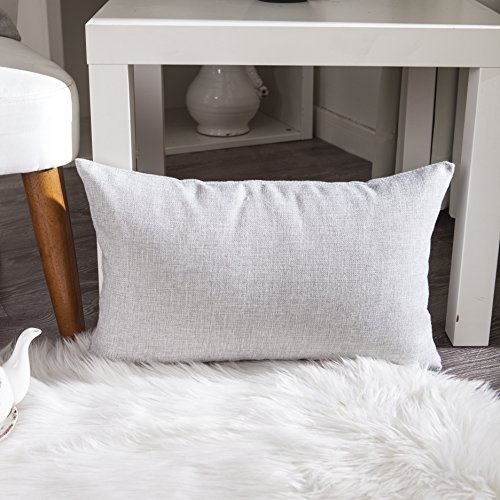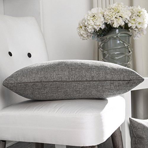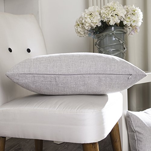 Home Brilliant Handmade Lined Linen Cushion Cover Throw Pillow Case for Couch, 12"x20", Set of 2, Light Grey