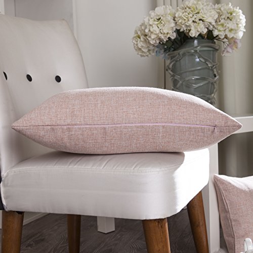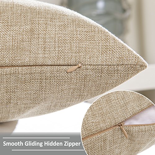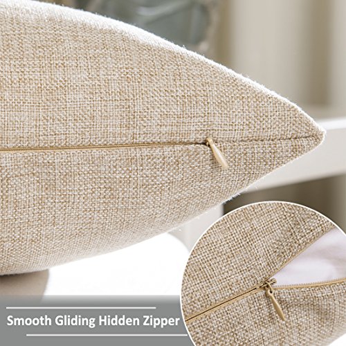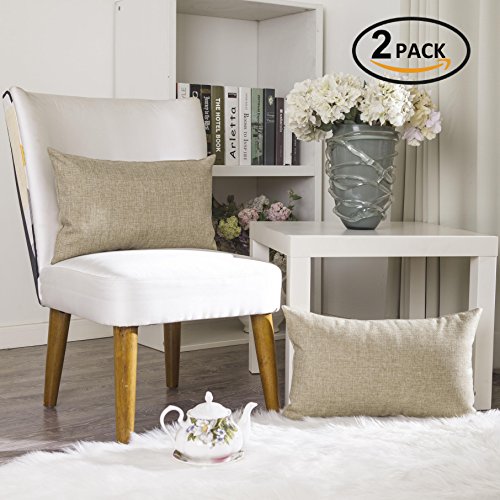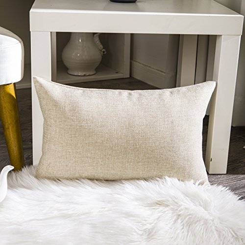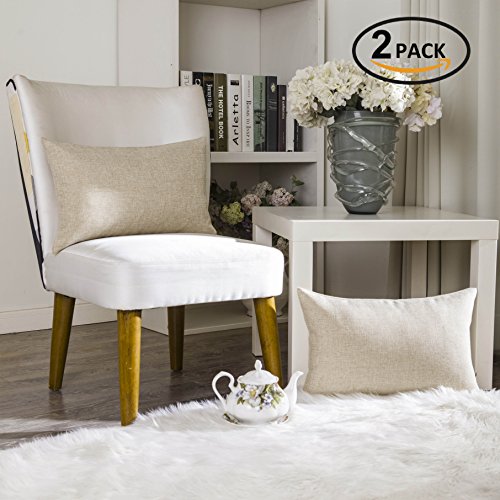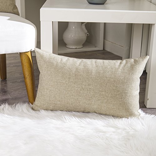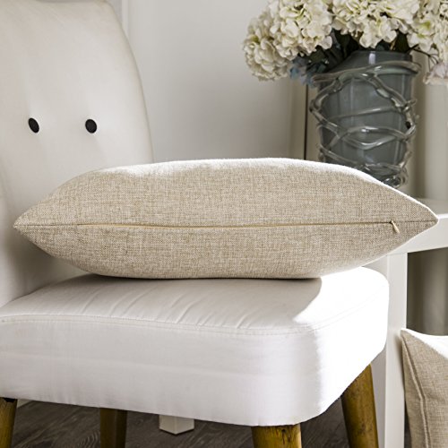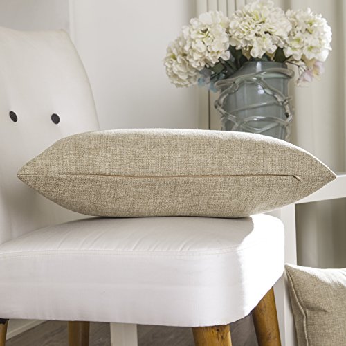 Home Brilliant Linen Textured Oblong Cushion Cover Throw Pillow Cover for Sofa, 30cm x 50cm, 2 Pack, Natural Linen