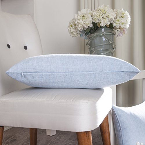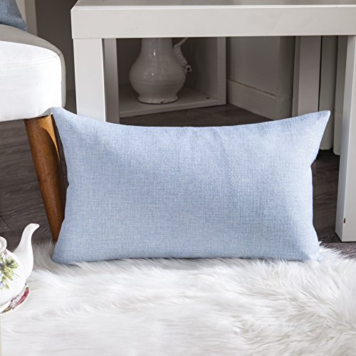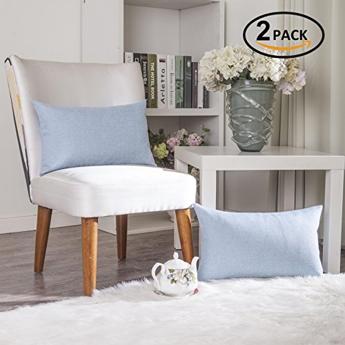 Home Brilliant Soft Linen Throw Pillow Case Cushion Cover for Bench, 2 Pack, 12" x 20", Light Blue