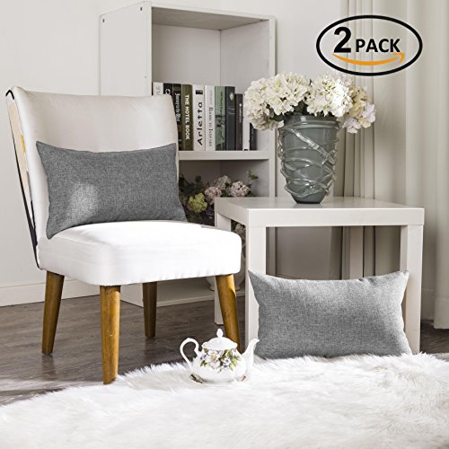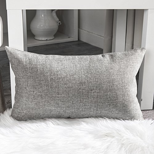Home Brilliant Decorative Lined Linen Rectangle Cushion Cover Throw Pillow Case for Kids, 12" x 20", Set of 2, Dark Grey