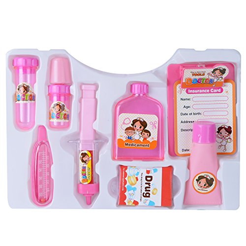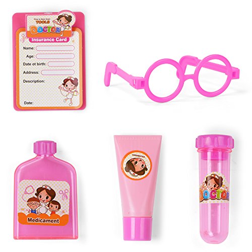 【Affordable and Complete】Include stethoscope, vulnerary, medicament, drug, syringe, thermometer, glasses, insurance card, applicator bottle, test tube and a heavy-duty carrying case. Totally 10pcs, color: pink.