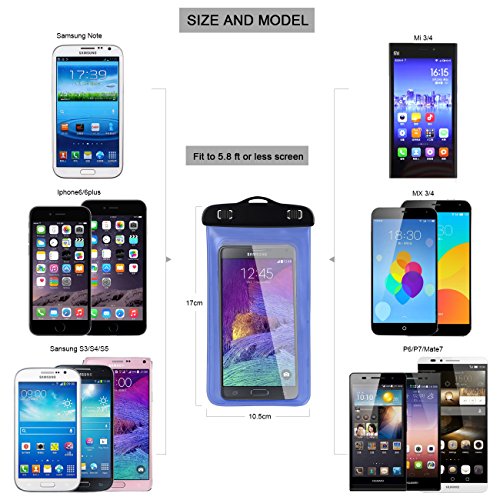 Waterproof Case, BestElec Transparent Underwater Pouch Bag Dry Case for Apple iPhone 6s Plus, 6 Plus, 5s, Samsung Galaxy S6 Edge, S6, S5, S4, Note 4, iPod Touch, Windows Phones, LG, GPS, HTC One, Sony Xperia Z2, Z3, Nokia ,Passport, Money etc [ With