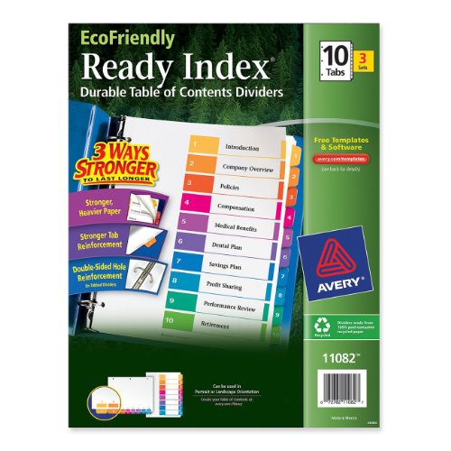 Avery EcoFriendly Ready Index Table of Contents Dividers, 10-Tab, 3 Sets (11082)
