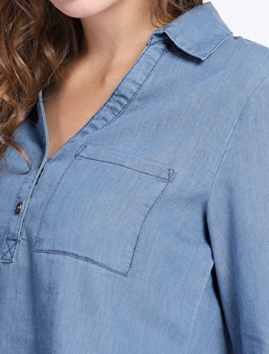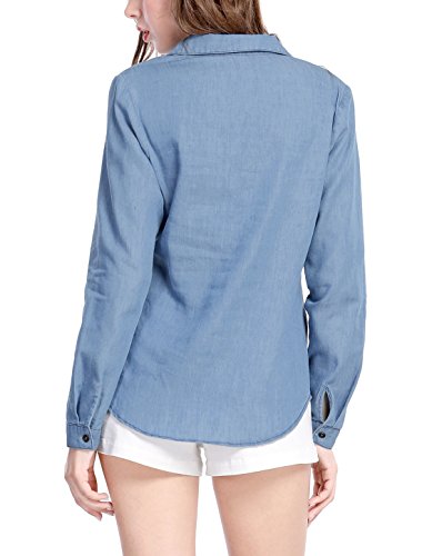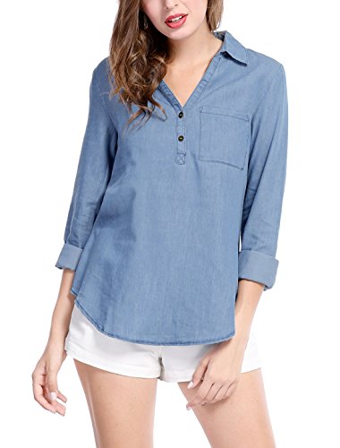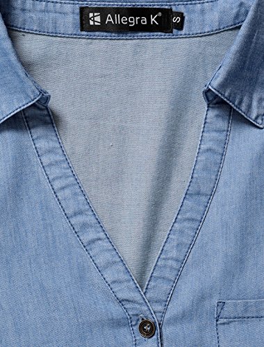 Allegra K Women's Half Placket Long Sleeves Pocket Denim Shirt