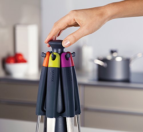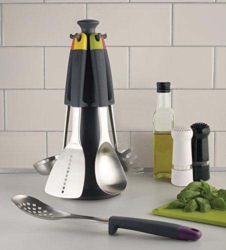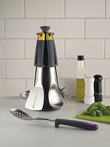 Studio : Joseph Joseph Publisher : Joseph Joseph Binding : Kitchen Product Description The Joseph Elevate Steel Carousel Set offers five essential cook's tools arrayed on a neat and countertop-friendly, rotating carousel for quick access and easy storage. Designed to improve hygiene and minimize mess, Elevate tools are equipped with weighted handles and integrated tool rests that keep the tool heads up off the work surface when they are placed down. The set includes everything you need for basic stove-top cooking--slotted and solid spoons, a slotted turner, a spaghetti server and a ladle. With high quality 18/8 stainless steel tool heads and heat-resistant silicone handles, the set is durable and comfortable for years of use. The tools are dishwasher safe and the carousel stand wipes clean with a damp cloth. The stainless steel tool heads are not suitable for non-stick cookware. 0