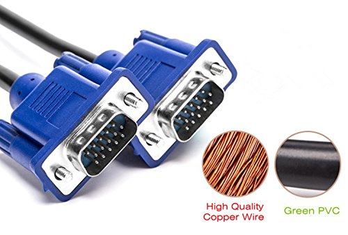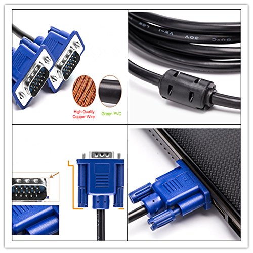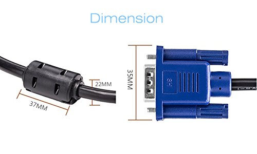 ★★★★★ SPECIAL FEATURE: Supports resolutions at 800x600 (SVGA), 1024x768 (XGA), 1600x1200 (UXGA), 1080p (Full HD), 1920x1200 (WUXGA), and up for high resolution LCD and LED monitors.The Cable shielding and integrated dual ferrite cores on the VGA wire minimize crosstalk, suppress noise, and protect against electromagnetic interference (EMI) and radio frequency interference (RFI);