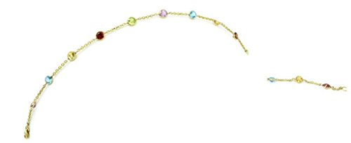 Multi-color Gemstones 10" Anklet,14K Yellow Gold Cable Chain
