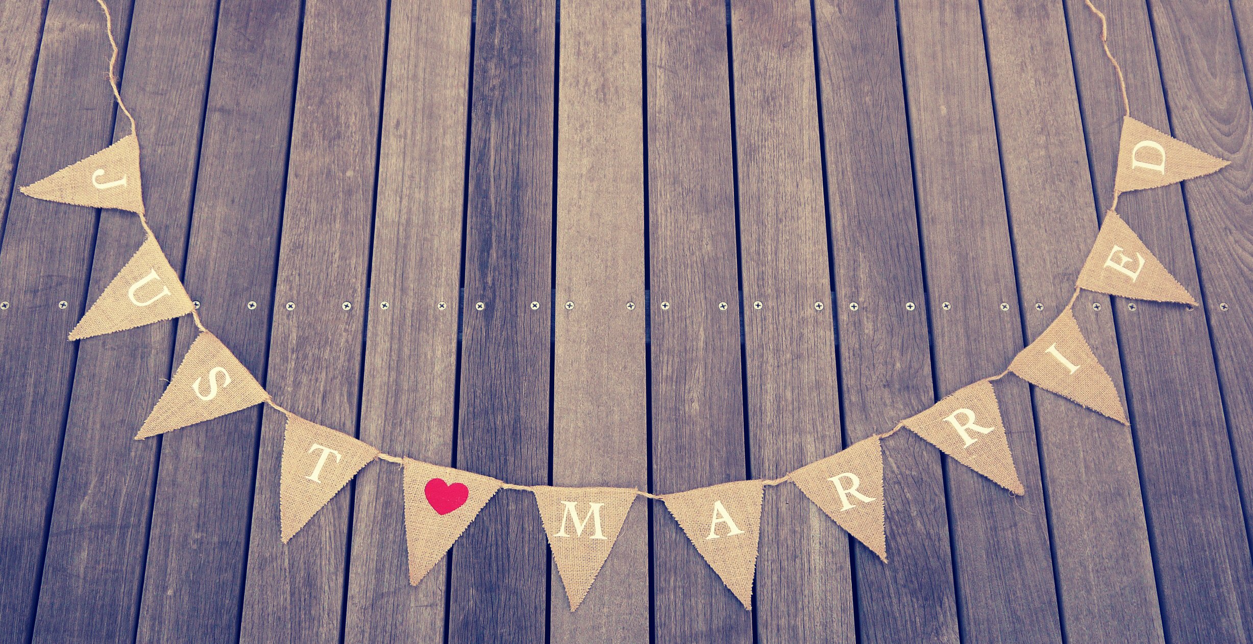 It is "JUST MARRIED" hemp garland perfect for photography such as wedding ceremony.
