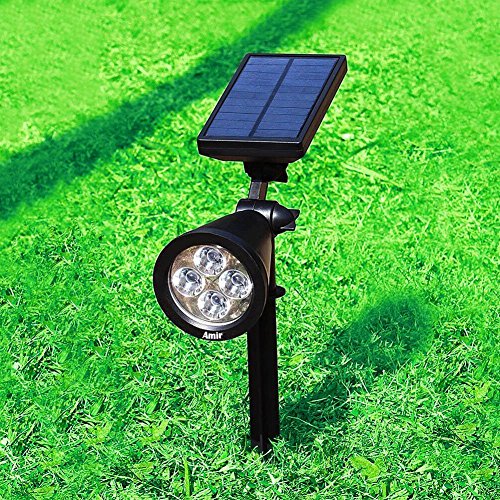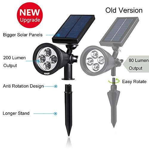 AMIR 2 in 1 Solar Spotlights, Upgraded Solar Garden Light Outdoor, Waterproof 4 LED Landscape Lighting, Solar Wall Lights with Auto On/ Off for Yard Driveway Pathway Pool Tree Patio (2 Pack, White)