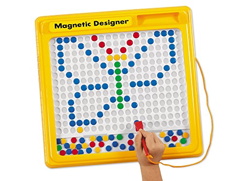 Studio : Lakeshore Learning Materials Publisher : Lakeshore Learning Materials Binding : Toy Product Description A fascinating way to build patterning skills and eye/hand coordination! Kids use a magnetic wand to move colorful metal disks around the board, and presto...they've made a design of their own. Self-contained designer has a clear plastic cover to prevent the disks from getting lost, plus a permanently attached wand. Sturdy plastic Magnetic Designer measures 12" square. Lakeshore Magnetic Designer Pattern Cards (sold separately) let kids create 15 designs--from a butterfly to a train. 0