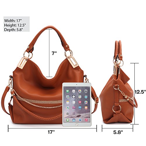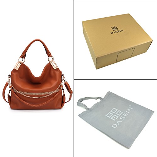 -. Feature : ★ LARGE 3 WAYS CARRYING HOBO: 17"W x 12.5"H x 6"D. Handle drop length: 8". Bonus shoulder strap (removable and adjustable) length: 42". You can use it as a hobo bag, top handle bag, shoulder bag, work bag, satchel handbag, travel bag, women handbag, tote bag etc. / ★ MATERIAL: Crafted in high quality and soft pebbled PU leather with gold tone shiny hardware and front rhinestone accents. 100% no chemical smells and eco-friendly. Stitching is well done and very durable. / ★ FASHION DESIGN: Classic hobo style with gold tone polish shiny hardware and hinges on the top, sides, front (Say no to cheap looking). + Decorative front hanging chain and waved leather strap + Front designer rhinestone accents + Adjustable and removable shoulder strap + Flat bottom with four studs (feet). All of this unique fashion elements focus on this beautiful hobo shoulder bag. You can't go wrong with it! / ★ PLENTY ROOM FOR EVERYTHING: Top zip closure and interior multi pockets to keep your stuffs organized and safe. Fabric fully lined interior with an open top cell phone pocket and plenty of room to fit your laptop, tablet, document, book, wallet, makeup, keys, iPad, files, and more. Soft leather rolled top handle can give you a comfortable carrying experience. / ★ EXCELLENT PACKAGE AND SHIPPING: One dust bag (which could be used as a shopping bag) and one dasein box or Amazon box. Seriously protect the leather from damage. Great gift idea for your friends, wife, parents or yourself. ✔ 100% NO RISK Money Back Guarantee;✔Ship from Los Angeles or Amazon Warehouse;✔FREE Standard Shipping In Contiguous United States;✔Find storefront of Dasein, more surP.R.Ises are waiting for you!