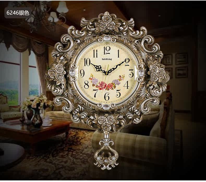 名称  安纳贝尔欧式复古静音奢华挂钟6246