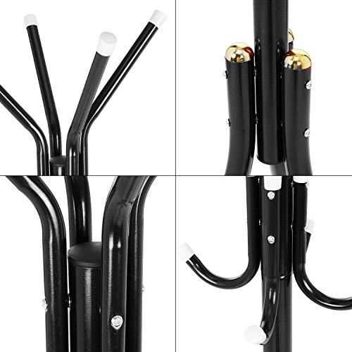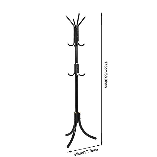 -. Feature : Sturdy Construction: Made with high-quality metals and plastic joints, sturdy and durable / Dimension: 45 x 45 x 175cm/17.7 x 17.7 x 68.9inch / Light and Portable: Space saving, suitable for bedroom, entryway, office, hotel and more. / With 12 Hooks: Perfect for coats, hats, umbrellas, bags, jackets, handbags, purses, scarves and more. / Easy to Assemble: It is easy to assemble and requires nothing but a simple screwdriver.