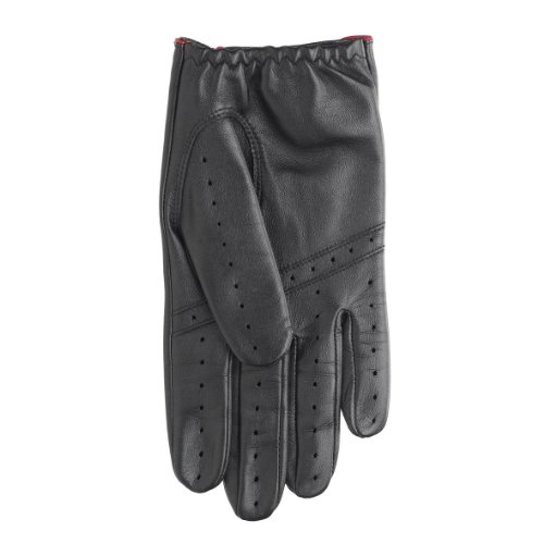 Product Description These timeless leather driving gloves are made by the renowned English glove maker, Dents, from the finest quality leather. Dents have been making gloves in the UK since 1777. Available in a classic Black with Berry Red detailing, these distinctive leather driving gloves are perfect for the sporty man who clearly loves his cars. Think Michael Caine in "The Italian Job". 0