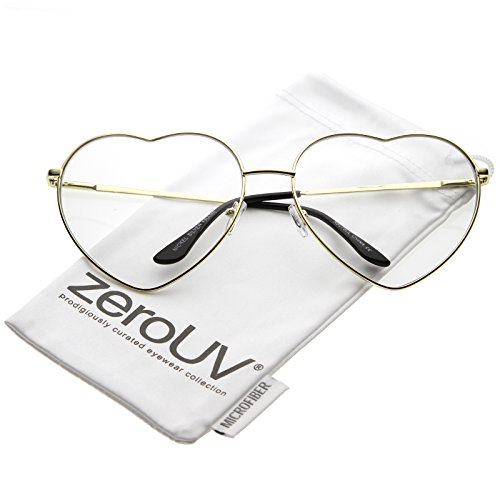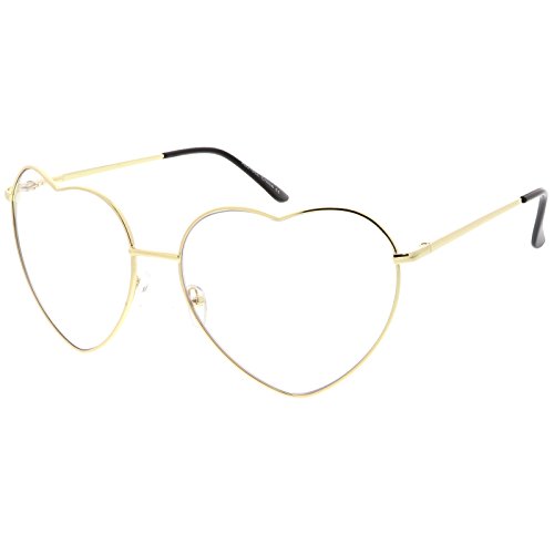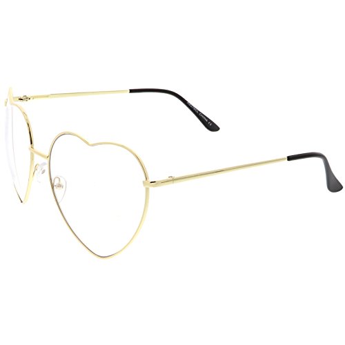 zeroUV - Oversize Metal Heart Shaped Clear Lens Eye Glasses 71mm