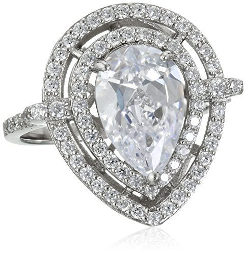 Charles Winston, Sterling Silver, White Cubic Zirconia Pearshape Halo Ring, 3.79 ct. tw., Size 7