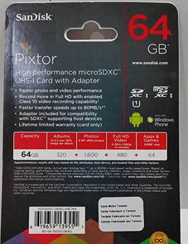 Product Dimensions:6 x 4 x 0.1 inches Item Weight:1.6 ounces Shipping Weight:1.6 ounces (View shipping rates and policies) Manufacturer:SanDisk ASIN:B017VTW5I2 Item model number:COMINU029336 Customer Reviews:5.0 out of 5 stars 4 customer reviews 5.0 out of 5 stars Best Sellers Rank:#108,971 in Cell Phones & Accessories (See Top 100 in Cell Phones & Accessories) #707 in Cell Phones & Accessories > Cell Phone Accessories > Micro SD Cards #108,671 in Electronics > Cell Phones & Accessories Date first listed on Amazon:November 12, 2015