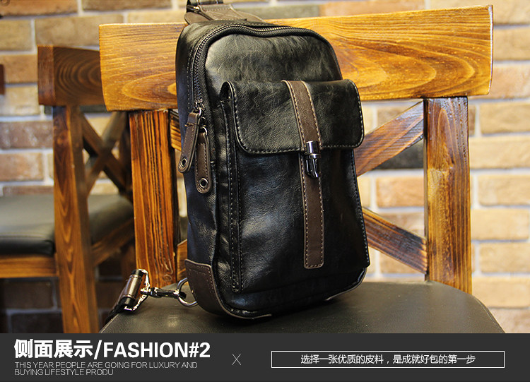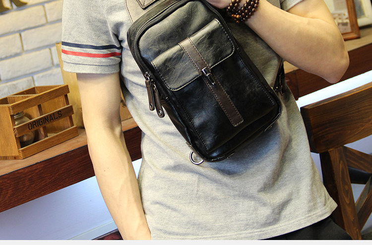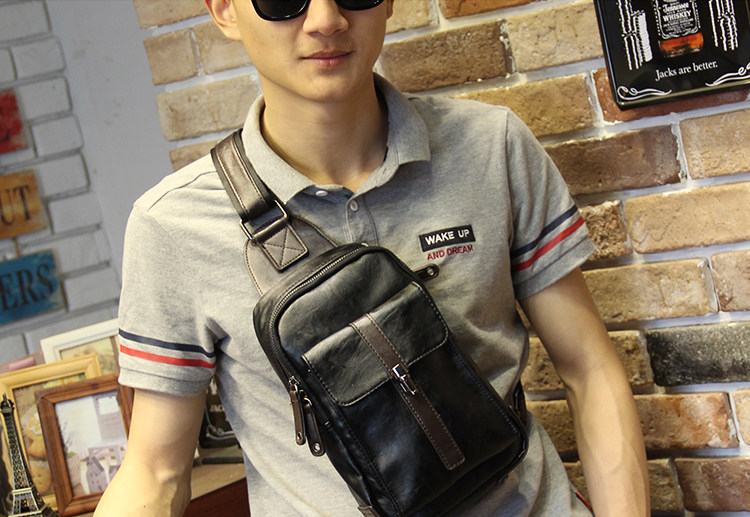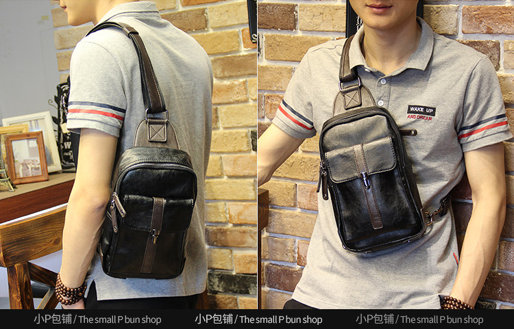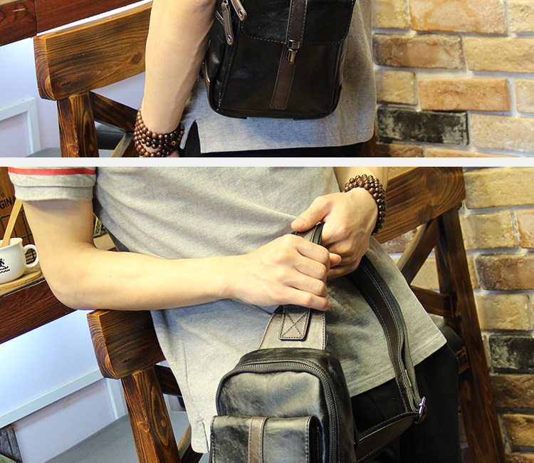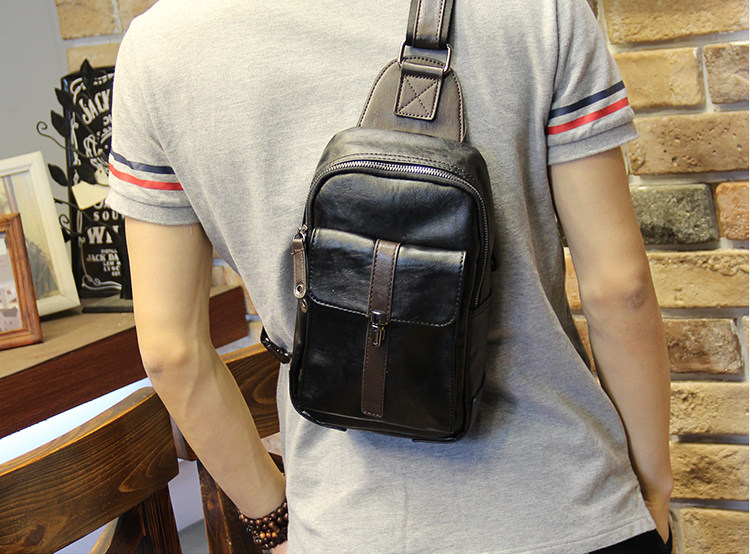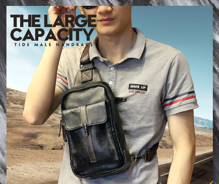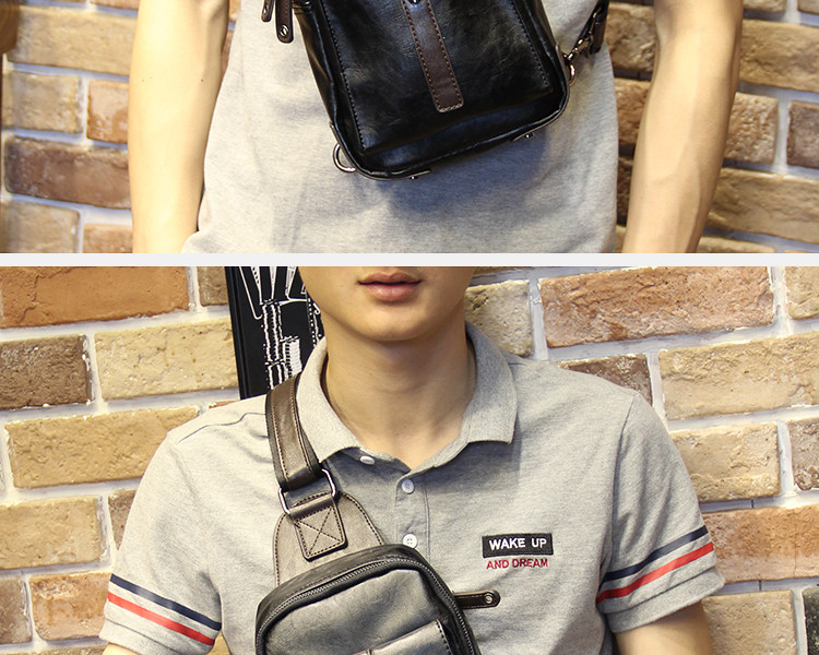 新款皮质休闲包 小胸包 夏季潮流背包 韩版男包男士胸包挎包潮包