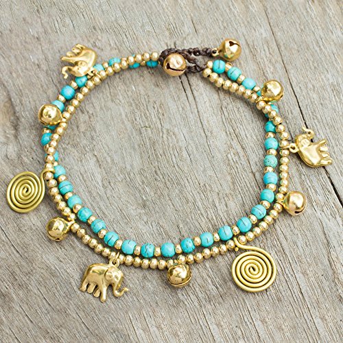 -. Binding : Jewelry -. Brand : NOVICA -. Department : womens -. Feature : An original NOVICA fair trade product in association with National Geographic. / Includes an official NOVICA Story Card certifying quality & authenticity. / NOVICA works with Tiraphan Hasub to craft this item. / Includes an original NOVICA jewelry pouch to keep for yourself or give as a gift. / A keepsake treasure designed to be loved for years to come. -. Label : NOVICA -. Manufacturer : NOVICA -. MPN : 247428 -. PackageQuantity : 1 -. PartNumber : 247428 -. ProductGroup : Jewelry -. ProductTypeName : FASHIONNECKLACEBRACELETANKLET -. Publisher : NOVICA -. Studio : NOVICA -. Title : NOVICA Blue Calcite Brass Beaded Anklet, 9.5" 'Elephant Bells'