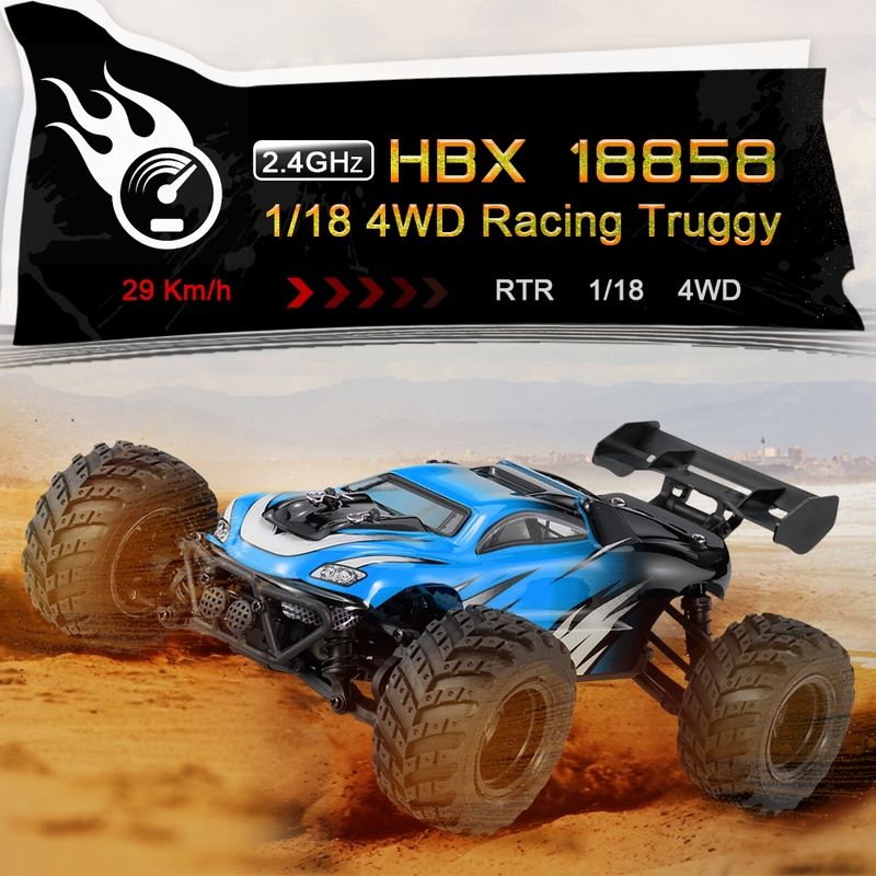 This HBX 1/18 scale off-road RC racing truggy is equipped with powerful 380 motor and 4WD independent suspension features high speed and great trafficability. With high performance tire and shock absorbers that you can steadily moveforward and backward, turn left and right. Just enjoying the fun!