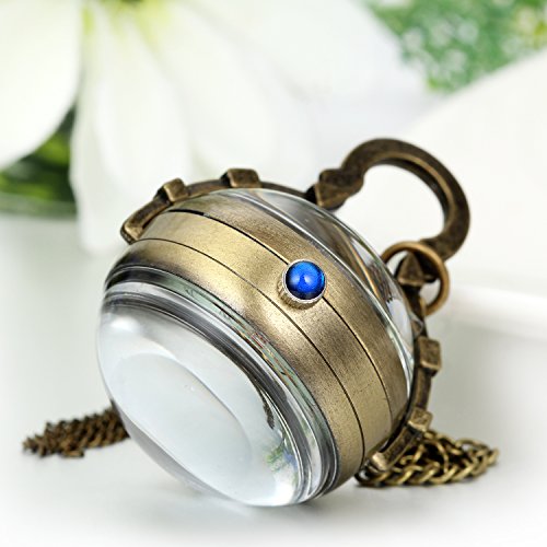 -. Title : Vintage Steampunk Glass Ball Orb Cosplay Pocket Watch Transparent Skeleton Mechanical with Chain