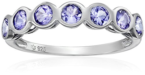 Seven stones wedding band featurning natural 3mm 0.85 cttw Tanzanite bezel set