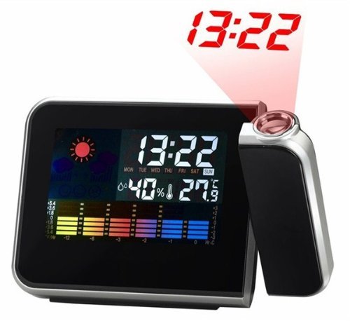 -. Title : 【ノーブランド品】 置き時計 目覚まし時計 温湿度表示あり カラースクリーン LEDバックライト プロジェクター搭載 天気・温度計・カレンダー機能付[ACアダプタなし] ブラック