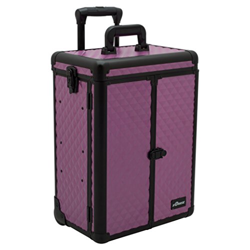 - 2-in-1, professional makeup rolling case, in this beautiful new purple diamond pattern with black aluminum trimming