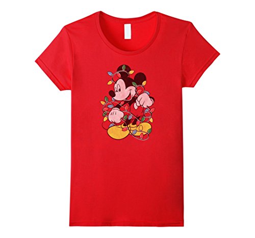 Womens Disney Mickey Mouse Christmas Lights T Shirt XL Red