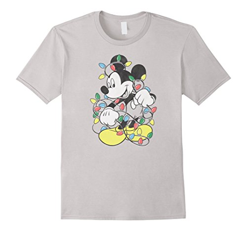 Mens Disney Mickey Mouse Christmas Lights T Shirt XL Silver