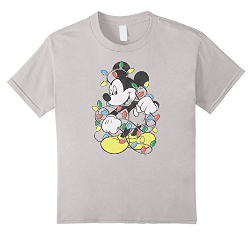 Kids Disney Mickey Mouse Christmas Lights T Shirt 12 Silver