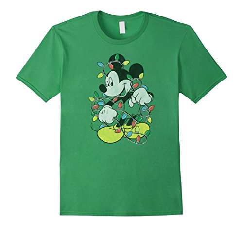 Mens Disney Mickey Mouse Christmas Lights T Shirt 3XL Grass