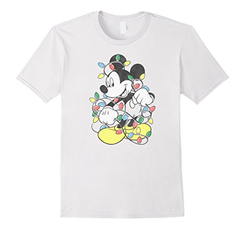 Mens Disney Mickey Mouse Christmas Lights T Shirt XL White