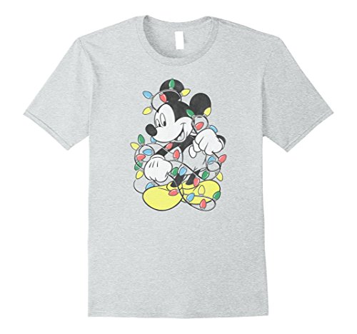 Mens Disney Mickey Mouse Christmas Lights T Shirt Medium Heather Grey