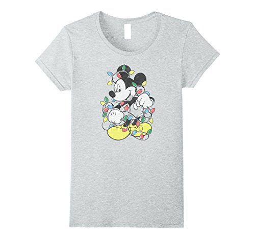 Womens Disney Mickey Mouse Christmas Lights T Shirt Small Heather Grey